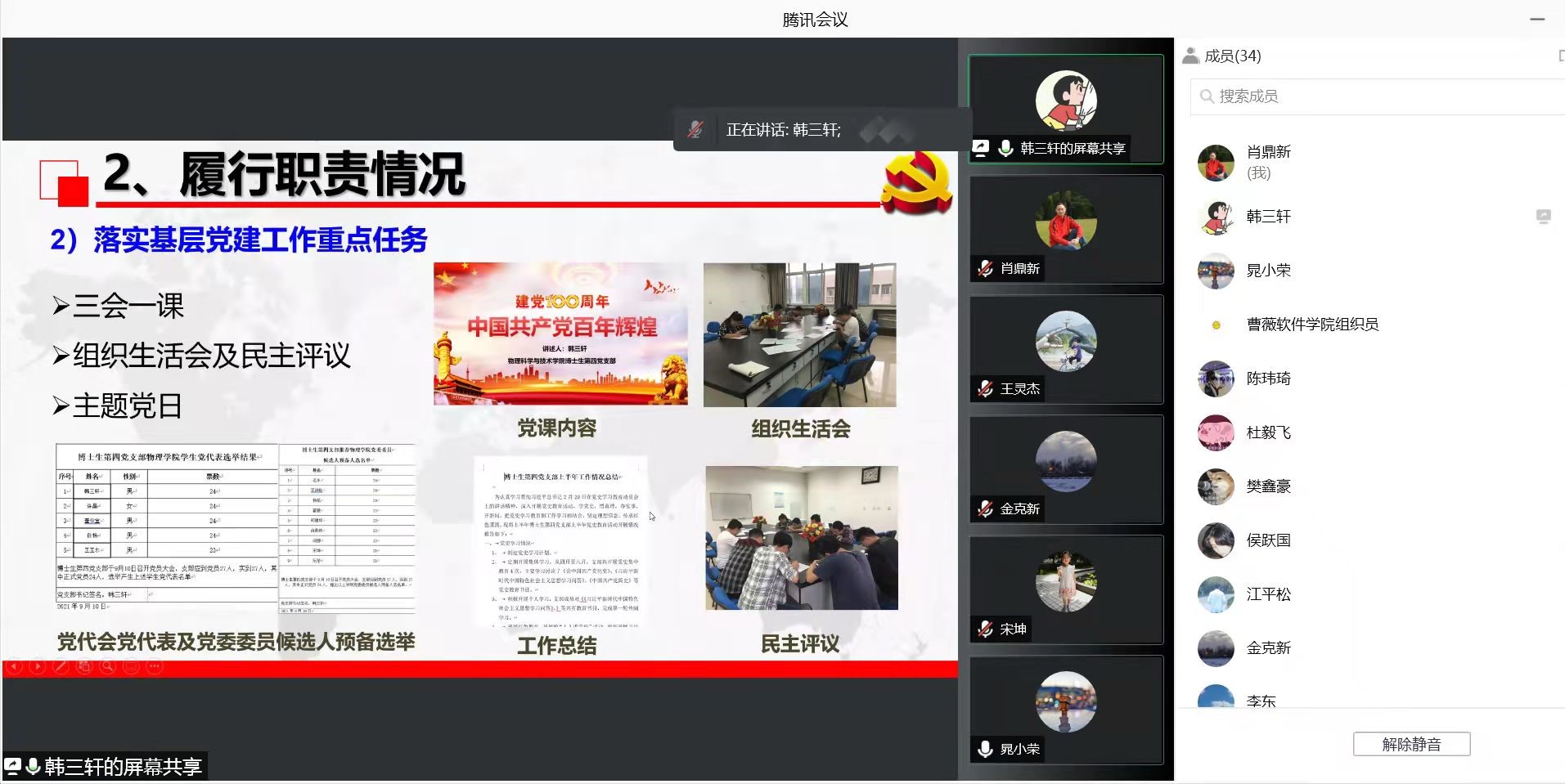 12月30日上午物理科学与技术公司党委召开了2021年党支部书记抓党建述职评议考核大会。评议考核组由公司党委委员、教师代表、员工代表组成,会议还特别邀请了化学与化工公司党委副书记姚冬冬和数学与统计公司党委副书记张莹参会指导。会议由公司党委书记晁小荣主持,物理公司所有师生党支部书记参加会议。