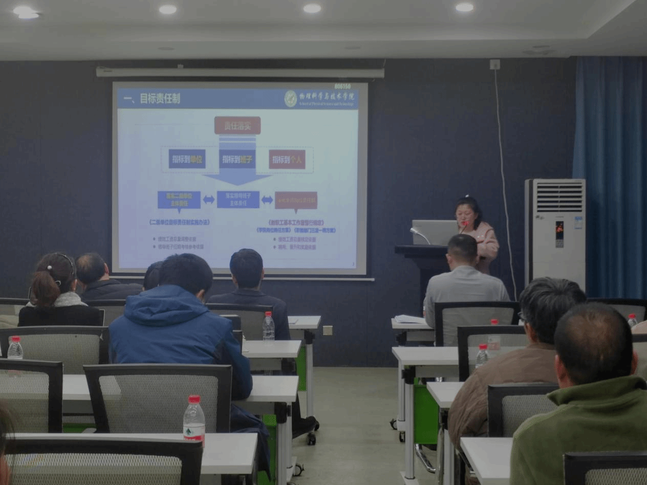办公室副主任马晓娜解读了公司关于新一轮聘期教师基本工作量的相关政策,重点介绍了整体工作考虑、基本工作量解读以及考核和绩效分配等内容。