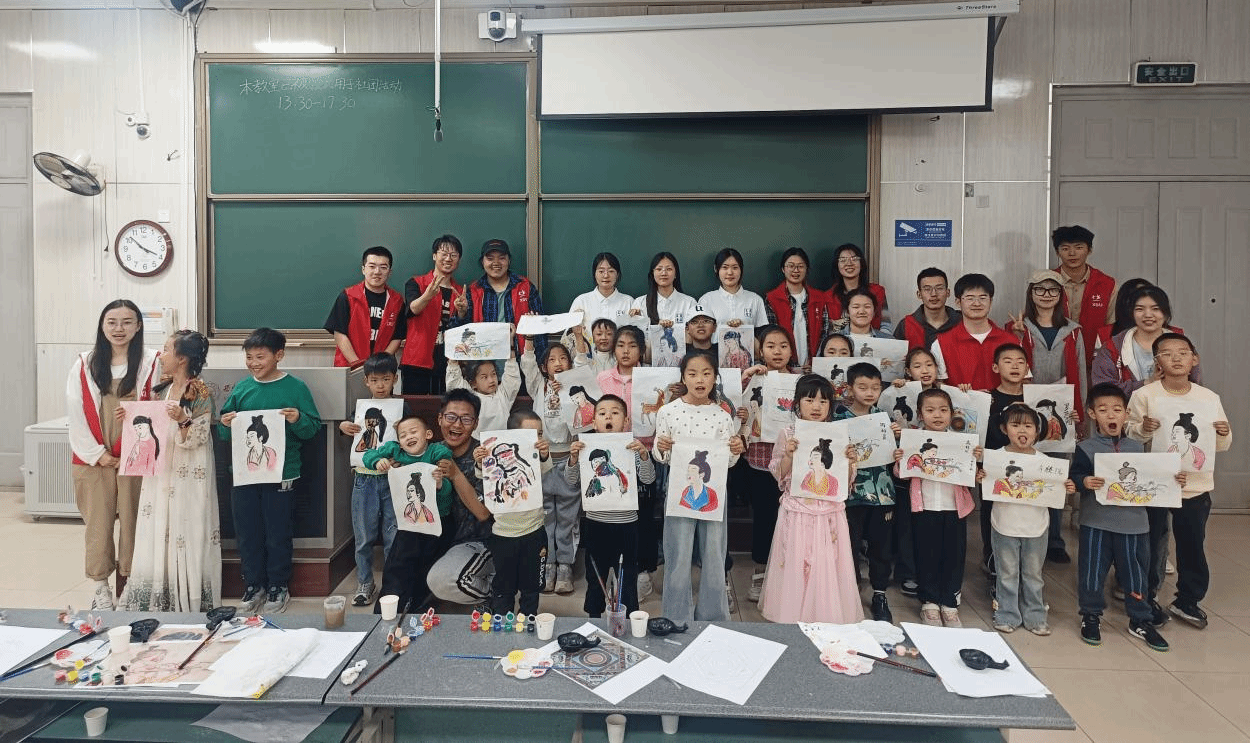 此次活动由社长周欣然带队,社团主要成员余新颖、齐瑞涵共三位同学一起向孩子们讲授唐代壁画的历史与文化,并现场指导小朋友们亲手绘制了属于自己的壁画。活动开始,余新颖同员工动地讲解了唐代壁画的历史文化知识,通过讲故事的形式让孩子们了解壁画的种类、涉及的形象以及传递的故事与思想,生动有趣的故事让孩子们听得津津有味。随后余新颖同学以图片、实物壁画相结合的方式向孩子们介绍了壁画中著名的“乐舞图”、“马球图”等,让孩子们与古代壁画文化来了一次近距离的时空互动。最后通过一段古法壁画制作视频,详细的向孩子们介绍了壁画制作的步骤,让孩子们在接下来可以有更好的壁画体验。