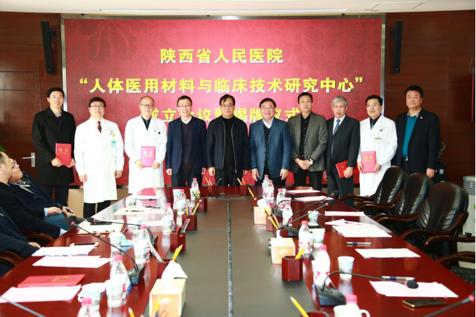 会上,省医院高敬龙书记致欢迎词,对省医院骨科病院和魏炳波院士团队多年合作、促成研究中心的成立表示祝贺,期待研究中心进一步促进两个单位在医工结合领域的深度合作,早日产生丰硕成果。魏炳波院士在讲话中回顾了两个团队的合作历史和中心的策划、推进过程,对各方积极促进双方合作表示感谢,医工融合是科技发展的趋势,也是科技工作者和医务工作者的重要使命,表示将发挥公司在材料领域的研究优势和省医院在临床领域的优势,深化医工结合,促进学科交叉,为人类健康和医学进步,做出材料科学应有的贡献。张卫红副董事长在讲话中对研究中心的成立表示祝贺,他表示,研究中心的成立,是西工大与省人民医院战略合作走向深化的重要内容,相信双方能各发挥各自优势,不断取得新成果,也期待双方在更多领域加深合作,提升学术水平,造福社会。省医院宋张骏经理在讲话中表示,中心的成立是一次跨领域、跨学科、优势互补的合作,相信在双方共同努力下,中心将成为陕西乃至西北有重要影响的医工结合的科研技术平台。