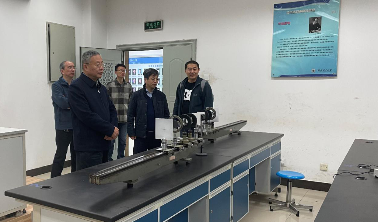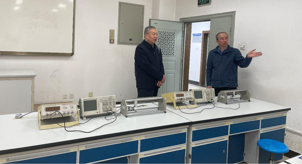 随后,万书记检查了和物理实验教学中心大学物理实验室,副经理尹剑波、物理实验中心主任杨超舜、大学物理实验室负责人庞述进行了全面介绍。万书记就选课人数、上课周数、课程容量、员工上课方式、文管类员工上课情况、教师教学队伍等问题进行了全面细致的了解,充分肯定了中心在教学、双创方面的成绩,并对今后工作提出了希望: