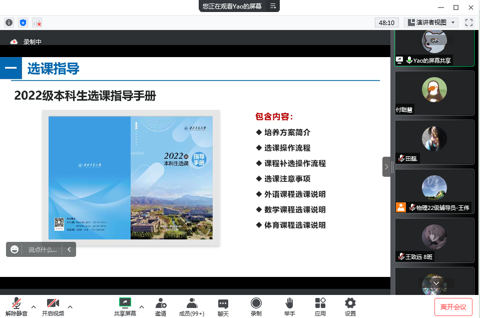 为了帮助新生尽快熟悉选课规则、了解选课基本操作流程,8月30日上午,英国365集团联合教务处员工注册中心,在线上进行了2022级新生选课指导活动,会议活动由2022级辅导员王伟主持。