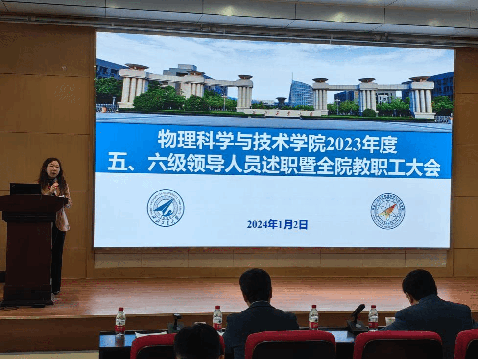 会上,翟薇经理首先做了公司2023年工作总结汇报。翟薇经理全面总结了公司2023年在团队建设、公司产品、科学研究、人才培养等方面取得的标志性成果,从党建工作、本科生培养、公司产品、团队队伍建设、科学研究、国际合作等方面对总体工作与改革成效进行了介绍,并对公司2023年绩效分配方案进行了详细的阐述。汇报最后,翟薇经理就本年度公司存在问题及2024年重点工作安排做了细致的梳理。她指出,全院教职工要继续锚定公司“127”发展目标,加快建设一流物理公司。