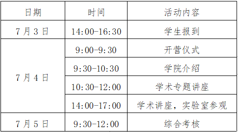 五、暑期夏令营日程安排